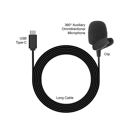 IZI Type-C HQ Microphone Exclusively for IZI Click 5K Action camera, Omnidirectional, Wind Noise Reduction, Convenient Clip, 1.5-Meter Cable