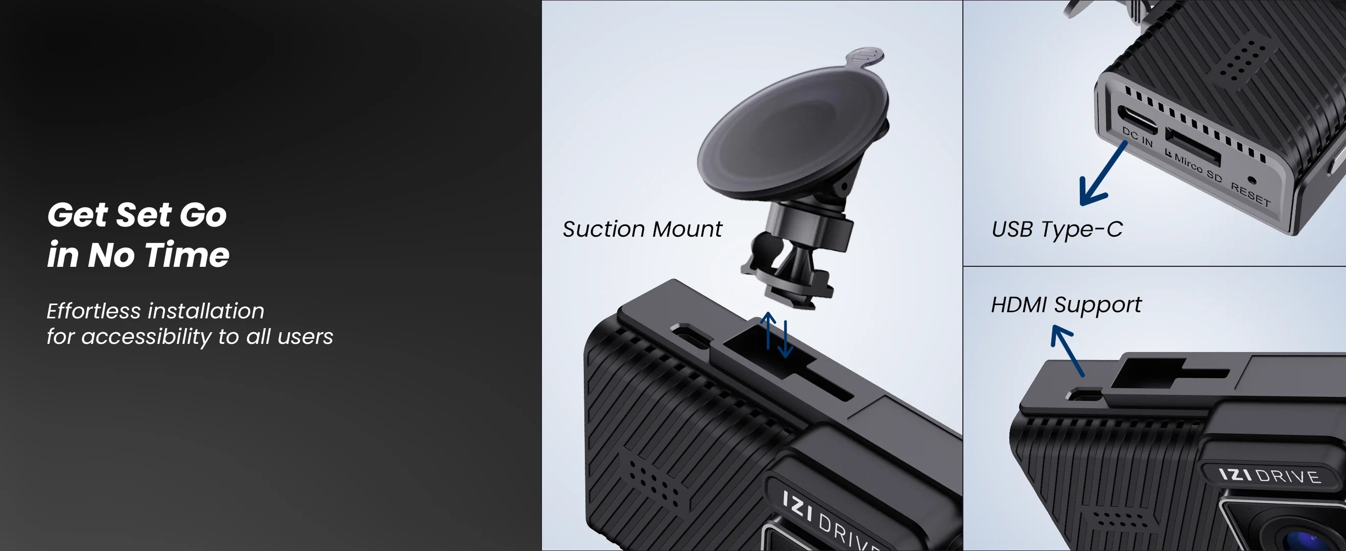 IZI DRIVE Plus 4K Dash Camera - Dual Channel, GPS, Night Vision