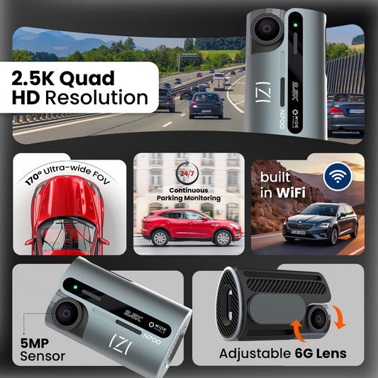 N700 Dash 5 MP Car Camera, 2.5K, Night Vision, WiFi, GPS, 512GB Storage